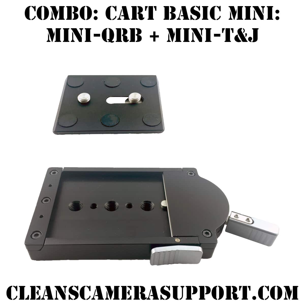 Combo: Cart Basic Mini is the essential Clean’s cart system for small-format rigs. Mini QRB on the cart, Mini Touch & Go on the camera, two pieces, one order, $60 off buying separately. If yer running an O’Connor 80mm Euro plate, Sachtler 16, or any small-format quick release system, this is yer starting point.